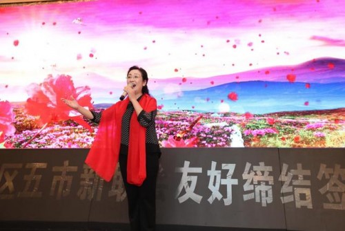 19時(shí),遼寧省四區(qū)五市新聯(lián)會(huì)友好締結(jié)簽約儀式在大連瓦房店市新聯(lián)會(huì)的高峰女士的歌曲《我們的中國(guó)夢(mèng)》中拉開序幕。