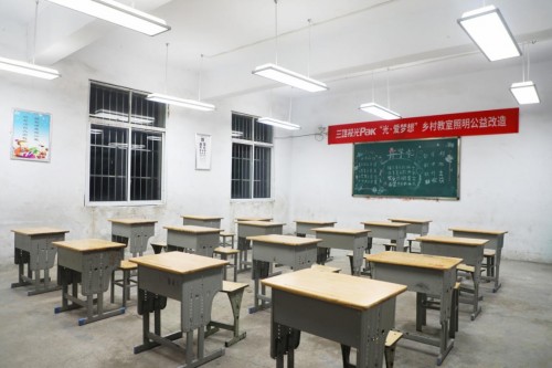 整個過程中,三雄極光不僅安排了專業(yè)電工為教室進行輸電線路設(shè)計和施工,同時安排專業(yè)照明設(shè)計師根據(jù)實地考察情況進行定制照明方案,并在現(xiàn)場指導(dǎo)安裝、調(diào)試燈具、數(shù)據(jù)檢測,保證教室內(nèi)燈光質(zhì)量達標(黑板區(qū)域平均照度、顯色性、色溫等)。