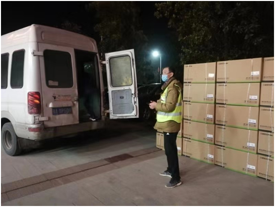 (首批援助燈具運達武漢施工現(xiàn)場倉庫)