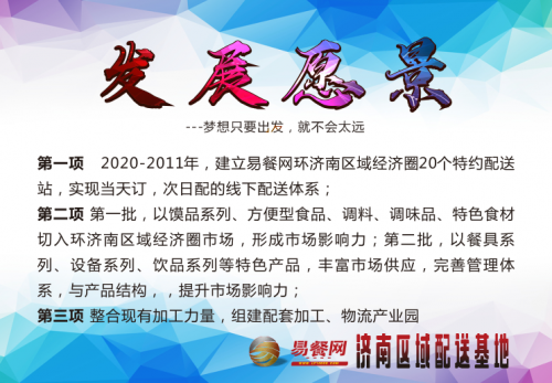 在過去的兩月中 ,易餐網(wǎng)負(fù)責(zé)人韓總,曾親臨濟(jì)南梳理我們的發(fā)展思路, 我本人也來陜西總部接受培訓(xùn),并與部分供應(yīng)商面對(duì)面溝通, 易餐網(wǎng)濟(jì)南基地的規(guī)劃 ,也從最初的單品型 貿(mào)易,逐步提升到綜合類大平臺(tái)運(yùn)營, 我本人的經(jīng)營理念, 也不斷得到洗禮與提升!