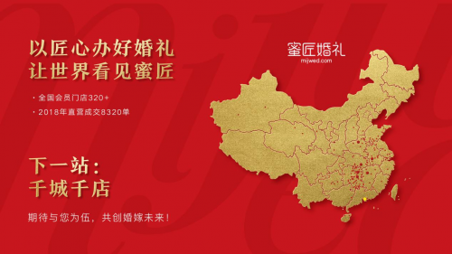 截止目前,蜜匠婚禮全國320+會員門店,將蜜匠這個寶藏模式融會貫通,成功轉(zhuǎn)型的比比皆是。通過蜜匠流量矩陣獲取區(qū)域內(nèi)60%婚慶客戶,鎖定超前婚期和大批外地婚慶客戶,再通過平臺級的轉(zhuǎn)化工具,實現(xiàn)極速獲取,快速成交,打掉同行利潤空間,快速成交回籠資金,躍身成為區(qū)域品牌性婚慶公司。